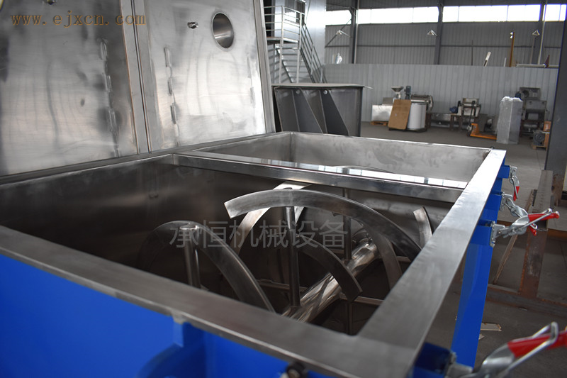 产品简介:卧式双螺带混合机结构是由U形筒体、螺带搅拌叶片和传动部件组成:其功能是将各种成份的粉料、液体混合均匀,有适用性广、混合均匀度好、物料残留少维护保养方便等特点,是粉状物料混合加工的理想设备。