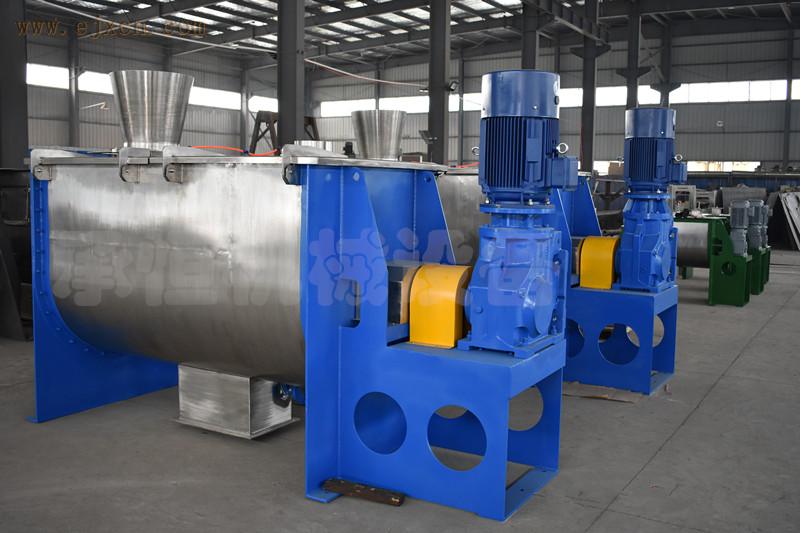 产品简介:卧式双螺带混合机结构是由U形筒体、螺带搅拌叶片和传动部件组成:其功能是将各种成份的粉料、液体混合均匀,有适用性广、混合均匀度好、物料残留少维护保养方便等特点,是粉状物料混合加工的理想设备。