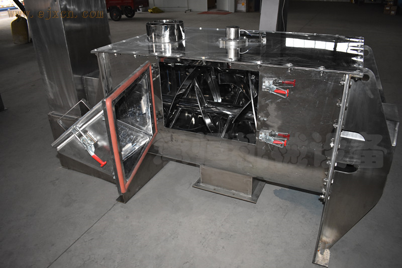 承恒机械生产的犁刀槽型混合机,具有新颖、旋转时,物料上下翻滚,同时桨叶通过物料,向混合槽左右两侧产生一定角度的推挤力,使得混合槽内任何一角落物料都不可能静止,从而使物料混合均匀。本机采用端面密封、调节密封螺母、补偿轴向压力的密封方法。