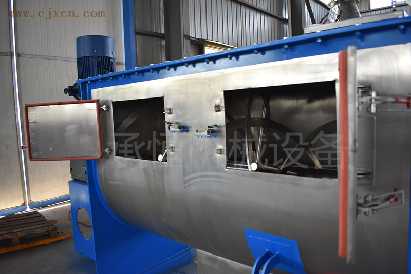 双轴搅拌机采用镶嵌式旋转辊盘,工作中压辊任意调整,各项功能均已达到较高水平。采用强迫式进料,并配有超载保护装置,均匀无阻,噪音低,使其运转更加可靠。采用大直径调质器,使物料熟化更充分,使颗粒更光滑,硬度更适中,成形率达98%,并且设备磨损率降到底。采用调速喂料,准确控制喂料量,以适应不同物料,不同颗粒直径的生产需要。
