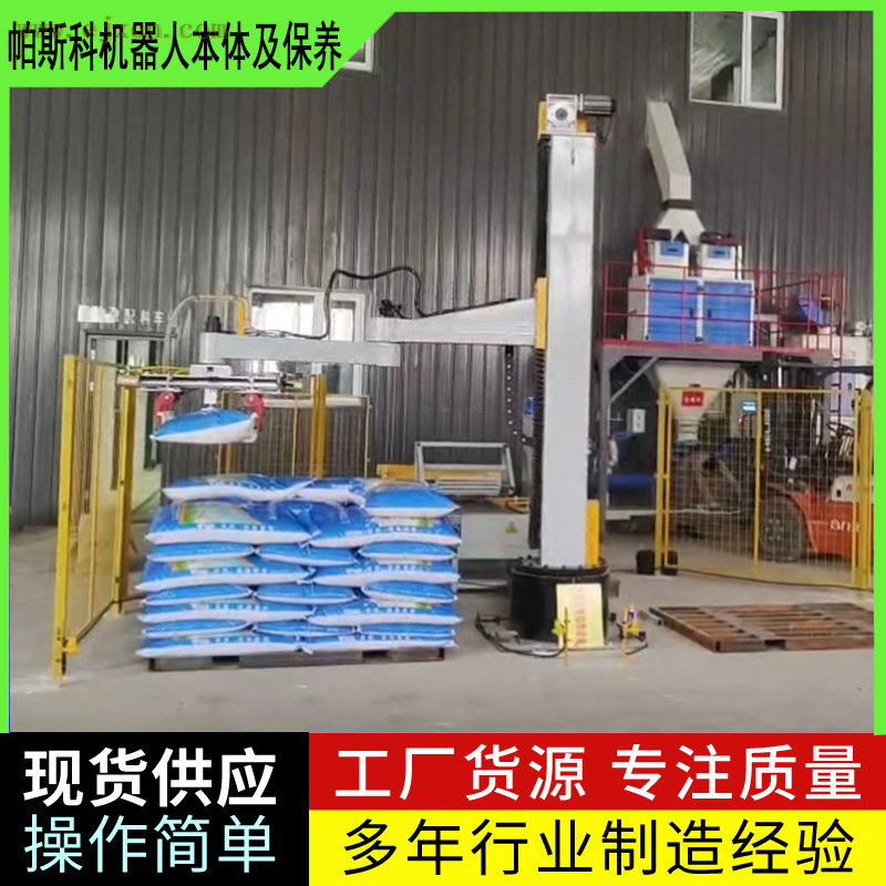 立柱式四自由度旋转码垛机器人它还具有操作灵活、快速高效、稳定性高、运行效率高等特点,还可以节省人力和空间。立柱式四自由度旋转码垛机器人采用全伺服驱动,选材优良,设备结构简单合理,操作维护方便,运行稳定,动作灵活,操作精度高,适用范围广,综合应用成本低,可广泛应用。