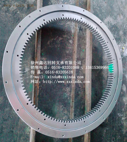 单排交叉滚柱式回转支承,由两个座圈组成,结构紧凑,制造精度高,装配间隙小 ,对安装精度要求高,滚柱为1:1交叉排列,能同时承受轴向力,倾翻力矩和较大的径向力,被广泛地用于起重运输、工程机械和军工产品上。