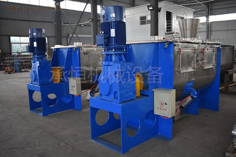 产品简介:卧式双螺带混合机结构是由U形筒体、螺带搅拌叶片和传动部件组成:其功能是将各种成份的粉料、液体混合均匀,有适用性广、混合均匀度好、物料残留少维护保养方便等特点,是粉状物料混合加工的理想设备。