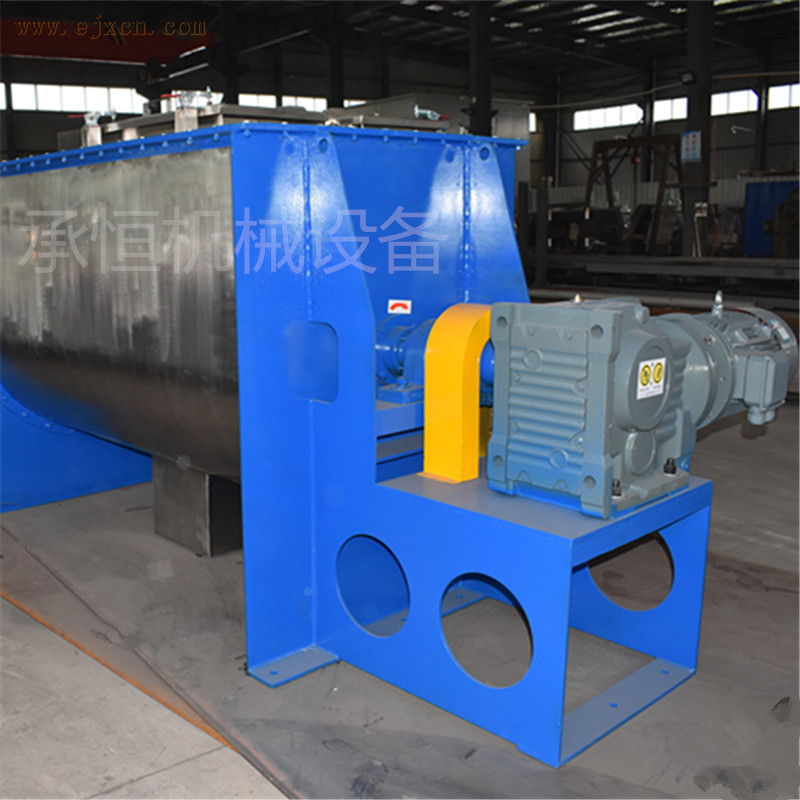 锥形螺带混合机是由电动机经减速机驱动螺带螺杆式的搅拌器旋转,旋转的外层螺带将物料在筒体内沿筒壁自下而上进行提升,内层螺杆将中心物料自上而下错位剪切,从而使物料在锥形筒体内相互扩散、对流、剪切、错位和掺混,促使物料作全方位的空间不规则复合运动,大量的物料可在短时间内实现混和,可以达到高标准的混合,物料排放彻底干净。