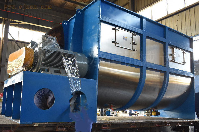 根据设备动力要求可以设计沿桶体螺带和中间轴带螺旋两种形式。筒体可以设计为全倒锥形和上部圆桶型。在物料比例在1‰加入时均匀度达到98%