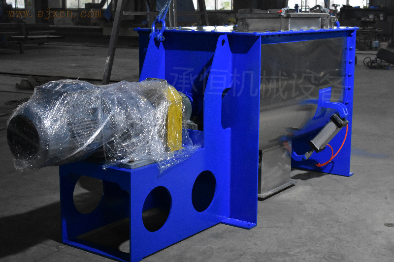 承恒机械生产的犁刀槽型混合机,具有新颖、旋转时,物料上下翻滚,同时桨叶通过物料,向混合槽左右两侧产生一定角度的推挤力,使得混合槽内任何一角落物料都不可能静止,从而使物料混合均匀。本机采用端面密封、调节密封螺母、补偿轴向压力的密封方法。
