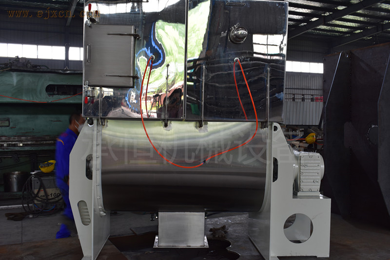 根据设备动力要求可以设计沿桶体螺带和中间轴带螺旋两种形式。筒体可以设计为全倒锥形和上部圆桶型。在物料比例在1‰加入时均匀度达到98%