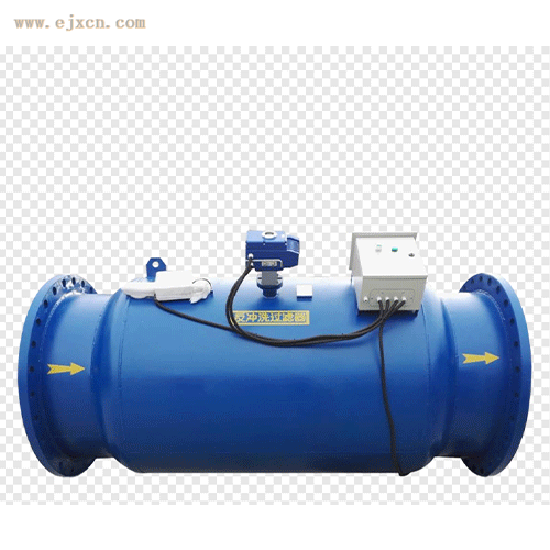 全自动反冲洗过滤器主要由筒体、不锈钢滤网、电动排污阀及排污装置所组成。当水过滤器工作时, 反冲洗蝶阀板幵启,水流由入口进入过滤器滤芯,经过滤网过滤后流出系统,杂质被拦截在滤芯内部。水 处理器需要排污时,关闭蝶阀阀板,打开排污阀,水流经滤网后半段外侧流入内侧,经前半段过滤,部分水 流由出口流入系统,剩余水流由滤网后半段外侧流入内侧,经排污口排出,起到反向自动冲洗滤网作用。