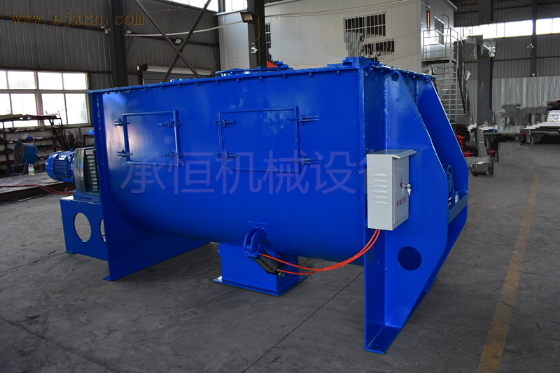 根据设备动力要求可以设计沿桶体螺带和中间轴带螺旋两种形式。筒体可以设计为全倒锥形和上部圆桶型。在物料比例在1‰加入时均匀度达到98%