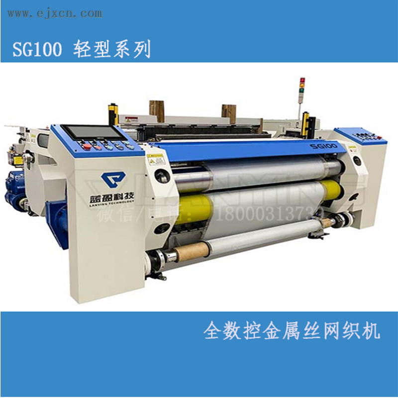 SG100系列数控金属丝网织机主要适用于轻薄织物织造。采用大触摸屏HMI,操作简单; 实时显示张力,自动调节网面张力; 数控三辊卷网结构,可实现不停机卸网。用户可以选择不同的开口机构:凸轮拱综框机构,电子旋转多臂,伺服多臂。