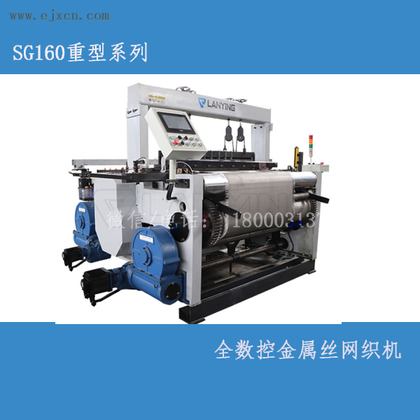 SG160系列重型数控金属丝网编织机,是我公司自行研发的一种机型,适用于编织较厚重的金属网面料,采用挠性剑杆直线引纬,开口量小,网面平整;有一次卡位和二次卡位两种打纬形式。踏盘吊综、拱综、伺服多臂三种开口机构可选,数控卷网、数控送经,网面张力自动调节。可编织不锈钢、铁、铜、黄铜、磷铜、铝、铂金、铁铬铝、聚酯、塑料等材料的丝网。