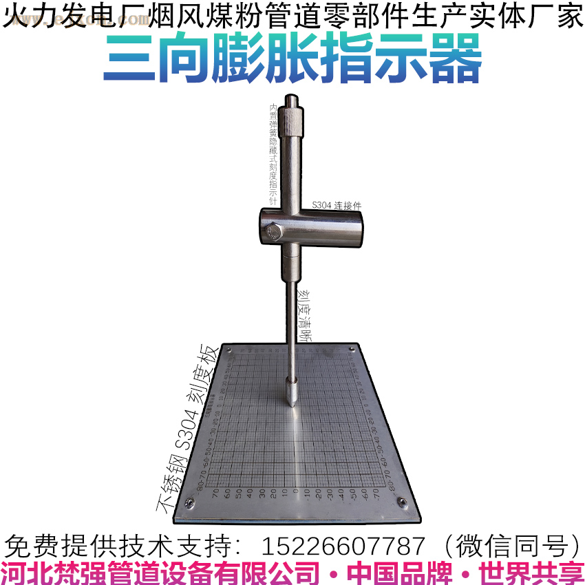 发电厂锅炉管道三向位移膨胀指示器,也称为锅炉三向位移指示器或三维膨胀指示器,是一种用于监测锅炉、管道或其他设备在运行过程中产生的位移和膨胀的装置。其主要作用是通过指示器上的指针或刻度盘来显示设备在不同方向上的位移量。