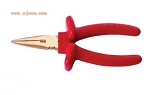 3、钳子头部当作锤子使用,会致使钳头出现凹痕或钳口不能正常咬合,做敲击工作时请选用适当的铜锤类等敲击绝缘工具。在弯折大强度线材、板料时使用尖嘴钳子,同样会造成尖嘴钳子口出现伤痕或钳头出现咬合不适当等现象。