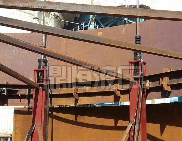 液压顶升设备支架总成施工方法有以下六种:液压提升倒装、中心柱倒装,充气顶升倒装、水浮倒装、正装法、机械顶升倒装。在先期施工的罐底板上安装数个固定垫墩 (400mm 高 , 间距 3-4 米 ), 然后组装 层壁板和顶盖板 , 沿罐内壁 400mm 处均布数台(根据计算确定)液压提升机,以提升机的滑动托架托住固定在罐内壁的胀圈下部 , 操纵液压提升机的控制柜,集中控制各液压机的动作.