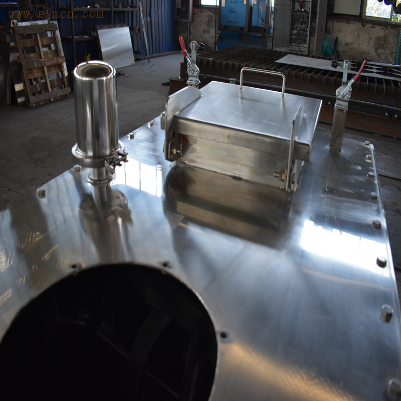 塑料粒化工混料机卧式螺带混合机的出料方式:粉体物料采用气动大开门结构形式,具有卸料快、无残余等优点;高细度物料或半流体物料采用采用手动蝶阀或者气动蝶阀。可配置加热或冷却夹套。