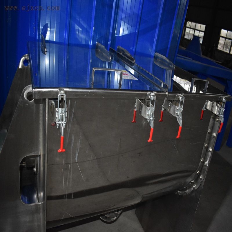 卧式螺带混合机出料方式:粉体物料采用气动大开门结构形式,具有卸料快、无残余等优点;高细度物料或半流体物料采用采用手动蝶阀或者气动蝶阀。可配置加热或冷却夹套。加热方式有电加热和导热油加热两种方式。冷却工艺可直接向夹套内注入冷却水,夹套换热面积大,冷却速度快。小型号混合机采用减速机直联方式,结构简单,运行可靠度高,维护方便。大型号混合机采用皮带轮带动摆线减速机驱动,皮带传动的弹性连接有在超载时保护传动部件的优势。广泛适用于制药、食品、化工、及其它工业对各种粉粒体或糊状物料的高均匀度混合。