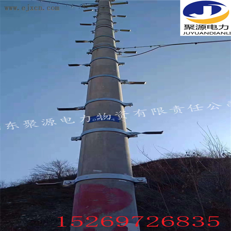 电杆爬梯主要用在电杆、灯杆、管桩、烟囱等需要外部攀爬的场景.电杆爬梯由爬梯主体和热镀锌抱箍组成,通常每套爬梯至少配两套热镀锌抱箍,抱箍尺寸以需要使用爬梯的电杆直径为准配置,电杆爬梯的长度可定做、可拼接延长;考虑物流运输能力,通常制作尺寸为3米4米范围,如需使用加长型,生产时可设计插槽, 方便拼接使用,为增加牢固性与安全性,可逐量增加抱箍的数量,已达到产品稳定性.