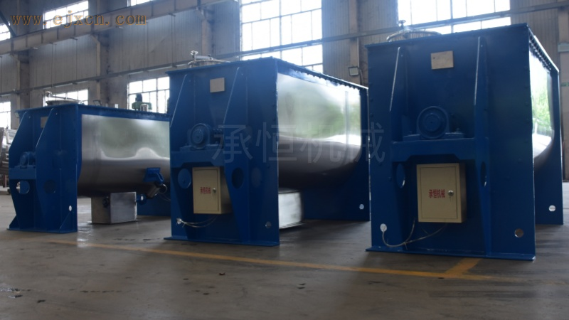 卧式螺带混合机是一种新型 、高精度的混合设备,广泛适用于制药、食品、化工、及其它工业对各种粉粒体或糊状物料颗粒的高均匀度混合。该机由混合槽、螺旋搅拌叶片和传动部件等组合而成,螺旋叶片一般做成二层,外层螺旋将物料从两侧向 汇集,内层螺旋将物料从 向两侧分流,使物料在混合槽内形成对流混合,从而达到高均匀度混合。大轴加粗型螺带叶加厚型,设备大轴可拆卸,两端夹板螺母卸掉抽出夹板即可把大轴拆卸,大大增加了使用寿命。
