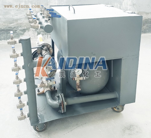 KD-Q-2热压板清洗机是山东凯迪公司自主研发设计的一款专门用于清洗压板机内部污垢的清洗设备,采用气压隔膜泵作为清洗动力来源,在清洗过程中形成脉冲式作业模式,构造简单实用,操作安全便捷,适用于介质为导热油、蒸汽等各类压板机内部结垢的清洗。