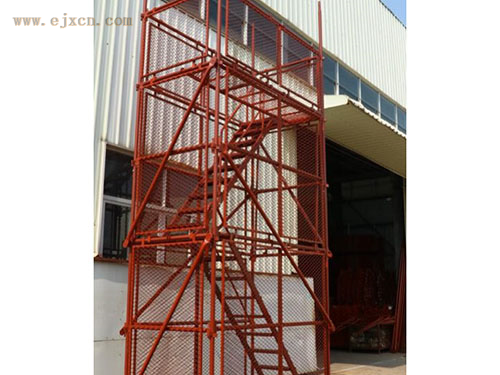四、安全爬梯在进行高空作业时,切不可进行上下的重叠,并在使用中在高空重叠作业在中间使用密封棚板进行隔离,并采用其他的隔离设施。而且施工安全爬梯的部件设计还。