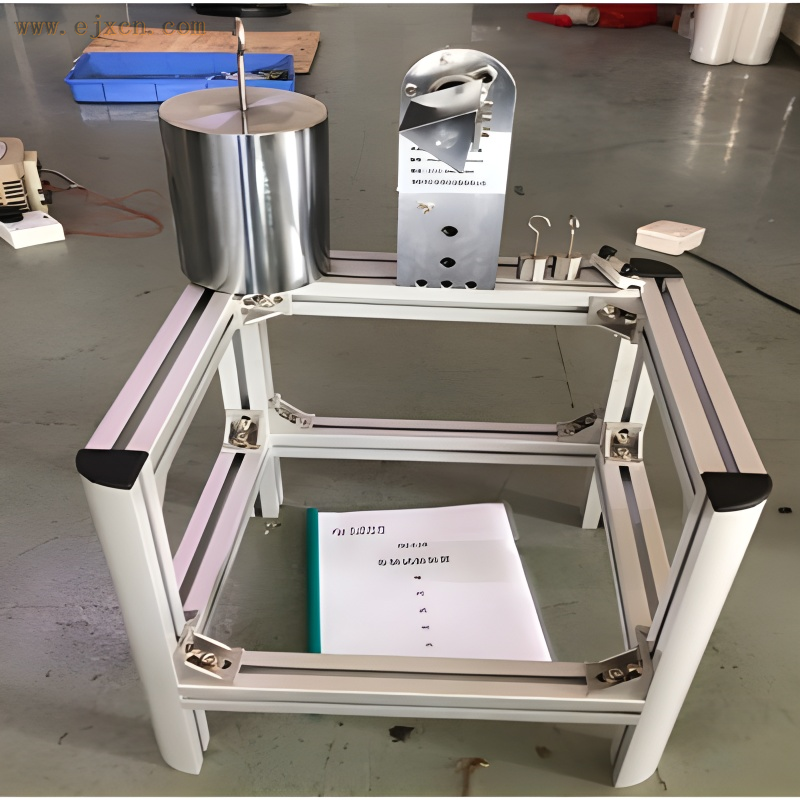 本装置对10°和230°位置进行机械限位,以确保试验角度的准确性,同时也实现了操作方法简单化;砝码附有挂环,以防试样某点因受力过大而被拉破。