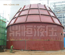 ⑥用液压提升设备将对接好的筒体再次向上提升一个标准段筒体的高度。