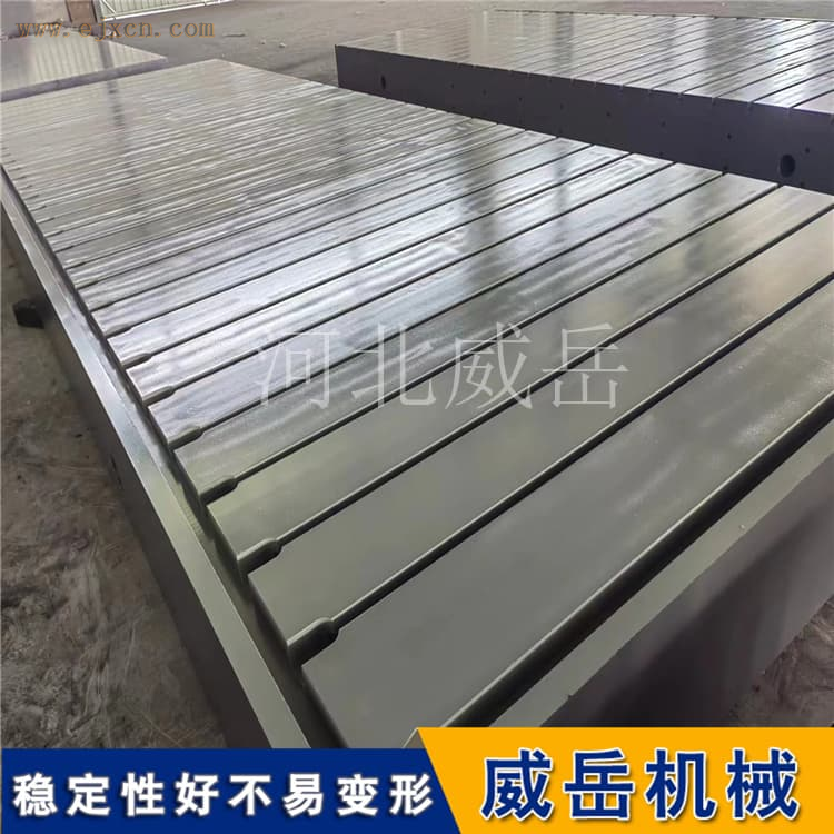 耐磨损是T型槽铸铁平台长期稳定使用的关键。平台通常采用强度灰铸铁(如HT200、HT300),这类材质具有良好的耐磨性、减震性和刚性。选购时,可通过观察平台表面判断工艺:经过时效处理(自然时效或人工时效)的平台,内部应力小,不易变形;表面经过精刨、研磨等加工的平台,平整度高,磨损均匀。避免选择材质疏松、表面有砂眼或裂纹的产品,这类平台不仅耐磨性能差,还可能存在安全隐患。?