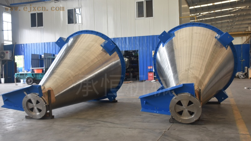 立式锥形螺带混合机广泛用于石油化工、食品、染料及助剂、颜料、建材、陶瓷、涂料、油漆、饲料、生物制品等行业的混合、对安息角小的细粒超细粉物料或有一定粘度的物料有很好的适用性。