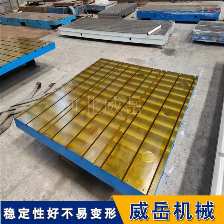 在设备装配过程中,铸铁平台通过基准定点实现精度控制。平台表面加工的T型槽、定点孔采用数控加工技术,槽间距误差≤0.05mm,孔位公差控制在±0.02mm,可配合定点销、夹紧装置实现设备部件的三维定点。例如,在数控机床主轴箱装配时,通过平台上的定点基准面与辅助支撑,可将主轴轴线与工作台面的平行度误差控制在0.01mm/1000mm以内。对于模块化装配的设备,平台的拼接精度(拼接间隙≤0.03mm)确保各模块的相对位置公差符合设计要求,减少累积误差对整体性能的影响。?