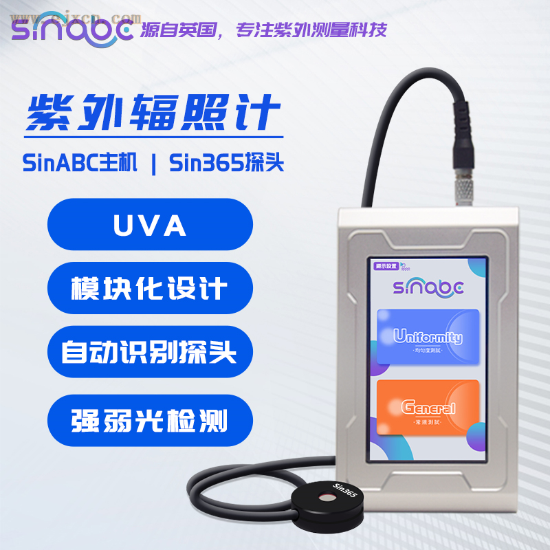 SinABC紫外辐照计采用高清全触摸屏设计,操作简便。仪器由主机与探头两部分组成。一台主机可以适合多探头,插拔更换探头,可以降低多光源情况下的使用成本。