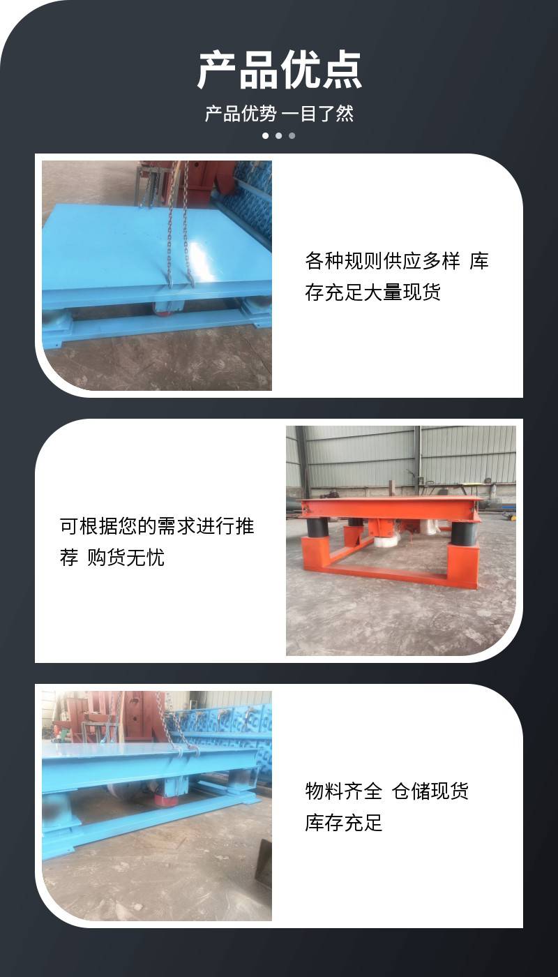 消失模铸造造型时,要用到造型的三维振实台。振实台分为三维和二维,一般使用三维居多。我厂生产的三维振实台具有结构简单、使用方便。振动平台台面和支架采用螺栓链接或者焊接,振实物料不易变形,负载1-10吨都没有问题,振动电机为振动源,振动***,消除气泡成型快。振实台主要有支架、台面、振动机构、减震机构四部分组成。在振动机构的带动下做横向、纵向、上下等三维振动,因此被称为三维振动平台。三维震动平台适用于复杂型腔铸件、消失模铸造厂、钢厂等行业使用较为广泛。