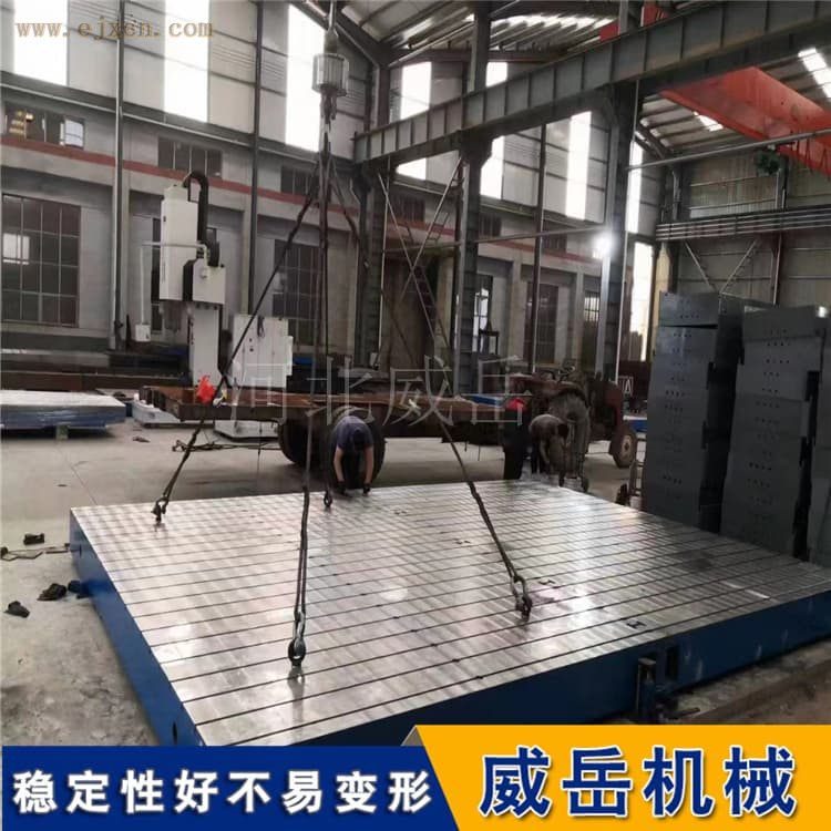 工程机械车架装配:用3000×6000mm重型平台(QT600材质)承载车架分段,通过槽位定位车架横梁、纵梁,确保焊接后车架垂直度误差≤0.05mm/m,比地面装配合格率提升至99%。