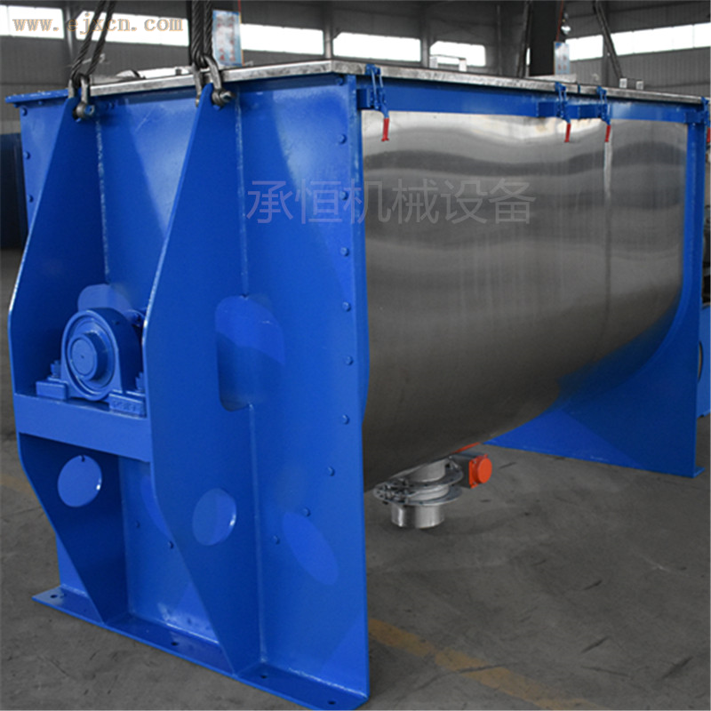 1.卧式螺带混合机由安装于搅拌轴上的内外径螺旋带动桶体内物料翻动,使搅拌器在桶体内大范围翻动物料。
