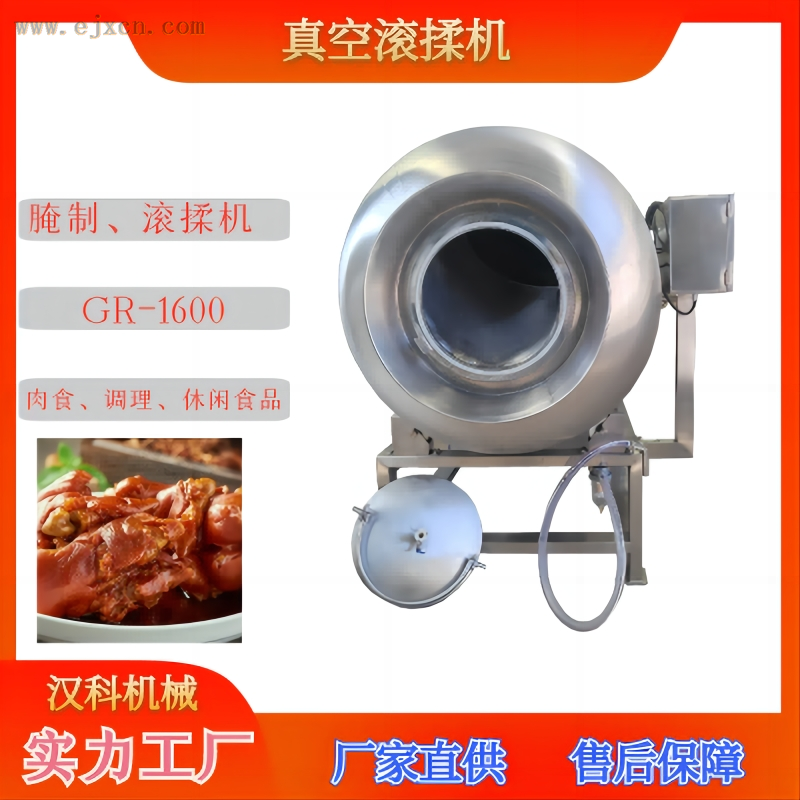 真空滚揉机是现代肉制品加工(如火腿、培根、烤肉、酱卤肉、禽类制品、鱼糜制品等)中不可或缺的核心设备。它通过在真空环境下,使滚筒内的物料(肉块、肉馅及辅料)按照设定的程序进行翻滚、摔打、挤压和按摩,从而实现快速腌制、提取盐溶性蛋白、改善质地、提升风味和出品率的目的。