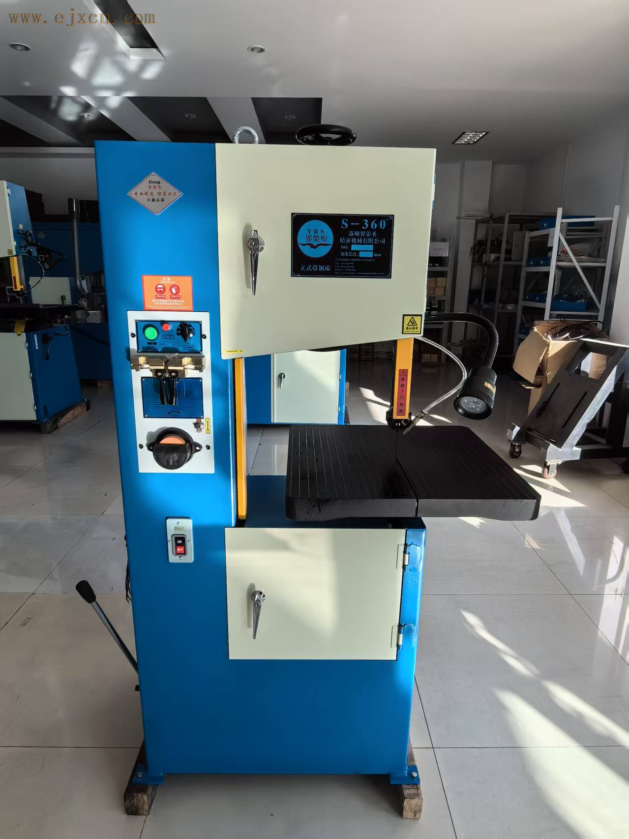 S-360小型立式锯床,最大锯切能力350MM,最大工作高度230MM,床台尺寸500*500,机械尺寸长930MM宽660MM高1590MM.