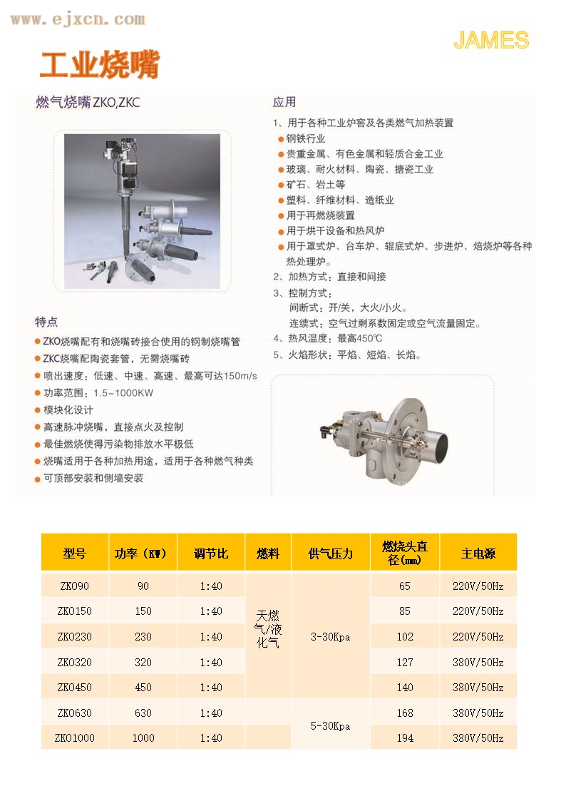 JAMES工业烧嘴燃烧烧嘴zko,zkc