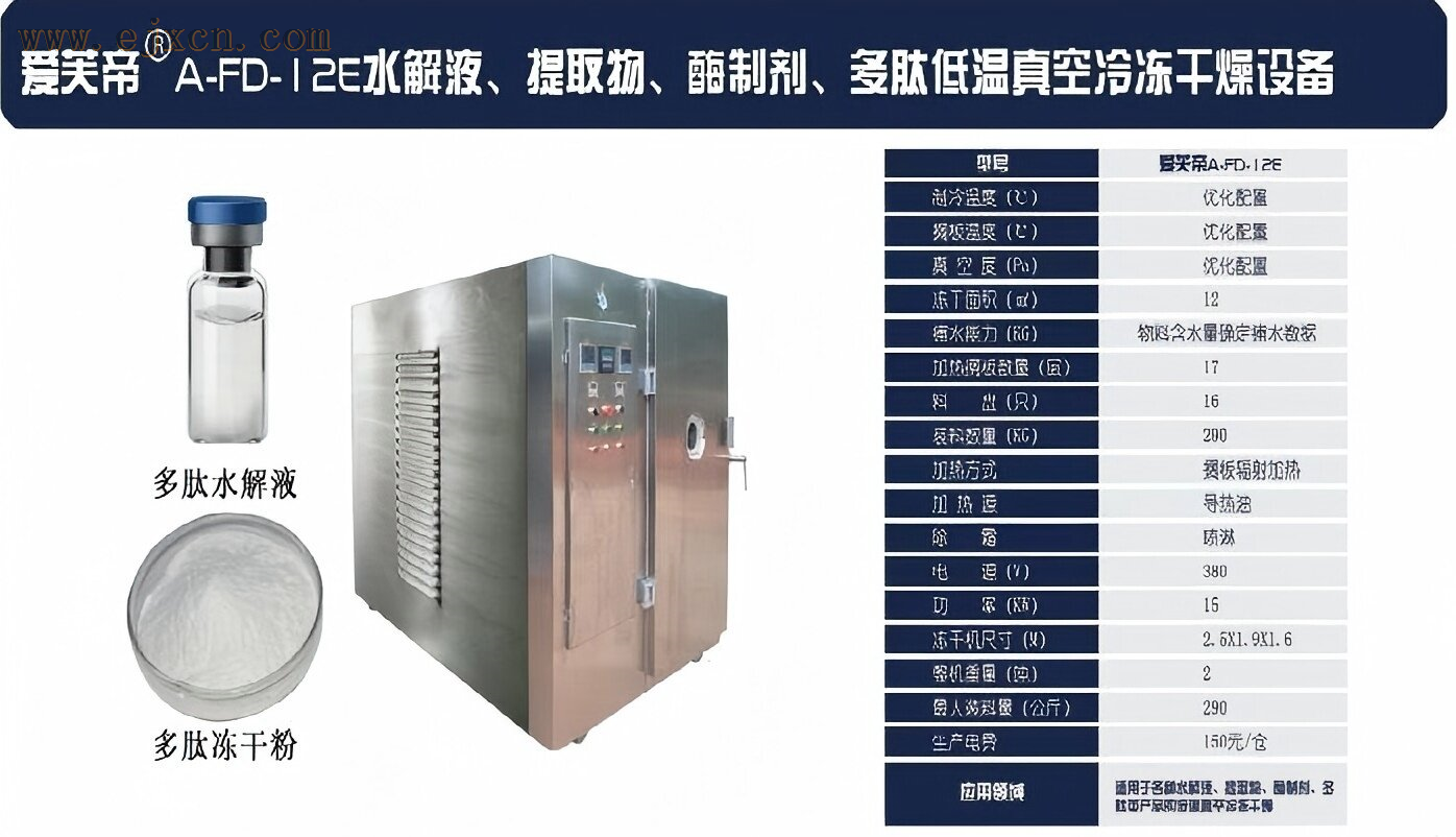 爱芙帝@A-FD-12E低温真空冷冻干燥设备的水解、酶制剂、多肽产品冻干装备及冻干技术性能更加卓著,20余年的技术累积,造就了独特的装备配置和完善的技术支持,为用户插上腾飞的翅膀,在全面掌握先进技术的同时,为公司快速发展莫定坚实基础。