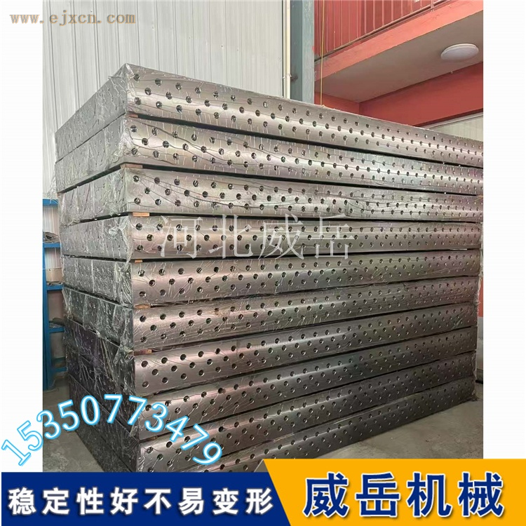 重载易导致工装变形—平台采用QT600球墨铸铁材质(抗拉强度≥600MPa),台面厚度≥200mm,底部十字筋板间距200-250mm,形成密集支撑结构,2000×6000mm规格平台额定承载可达50吨,30吨重型工件放置后台面挠度≤0.03mm,远低于传统钢制工装0.1mm的变形量,避免因工装变形导致的焊缝错边;