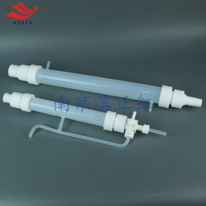 PFA过滤柱带冷凝器(带筛板) 选用进口高纯电子级PFA材料,金属离子杂质含量低,洁净无污染。 耐强酸强碱和有机溶剂,耐高低温(-200至250℃),化学性能稳定,可重复、多次使用。 PFA过滤柱带冷凝器,可一边过滤,一边冷凝,可替代玻璃过滤冷凝装置。
