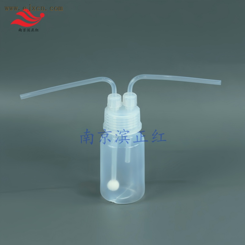 PFA洗气瓶是一种洗去气体中杂质的器皿,是将不纯气体通过选定的适宜液体介质鼓泡吸收(溶解或由于发生化学反应),从而洗去杂质气体,以达净化气体的目的。在设计时,四氟球的周围都布满小孔,一般情况下,长导管进,短导管出(也可加工英制管)。