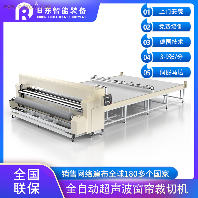 全自动超声波裁切机是一款专为窗帘面料批量精准裁切设计的专业设备,核心搭载德国技术超声波系统、日本进口 SMC 气缸及台湾高品质导轨,保障性能稳定与裁切品质。设备主要适配卷帘、柔纱帘面料裁切,尤其适合尺寸规格统一、订单量大的生产需求,能实现裁切布料封边良好、不毛边的效果。通过 PLC 及触摸屏控制,可自动完成裁切流程,大幅减少人工干预,是窗帘加工企业提升批量生产效率、保障裁切精度的核心设备。