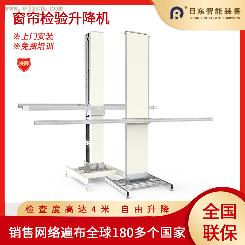 本设备主要是为了方便检查窗帘质量而开发。该设备机械结构简洁,操作简单。每台机只需一名操作人员就可以检查窗帘的每个细节,其中包括布料长度、宽度、污染等等。该设备能检查窗帘高度到达4米多,自由升降,省力又省时。