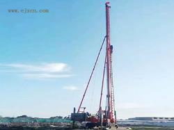 32米长螺旋钻头包括液压脚踏桩和钻入系统两部分。桩架采用液压步行式底盘,自动化程度高,可自行行走和360度旋转,设置4个液压支腿和1个行走缸,辅助行走和旋转,同时提高施工时整体稳定性,整体运输。柱为可折叠式箱型柱,法兰连接方式,柱采用两块高厚锰板,采用大型折弯机折弯技术,同时柱内部每60cm焊接四根加强筋固定,增加柱抗扭曲性。柱子由两个变幅液压缸控制起降。钻机系统包括动力头和钻机,动力头输出轴和螺旋钻机为中空式,桩机采用长螺旋钻机,通过钻机中心管可泵送混凝土(泥)混凝土CFG桩,钻机可一次性完成,也可采用干法钻机,注入换钻机后,可采用深层搅拌等多种工艺施工。