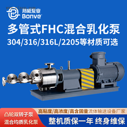 邦威混合均质乳化泵是一种集混合、分散、破碎、溶解、精细、解聚、均质、乳化为一体的高效型产品。使用该系列产品后,原来的传统生产工艺进一步简化,生产效率大幅度提高,产品质量明显改善。邦威混合均质乳化泵主要工作部件由定子、转子组成。定子在转子高速运转的离心力和液力作用下,将物料进行强烈的剪切、离心挤压、撞击破碎、液层摩擦、湍流均匀等综合作用,从而使不相溶的固相、液相、气相等多种介质在瞬间均匀精细、分散乳化。经过往复循环,使原来的产品达到稳定的高品质产品。