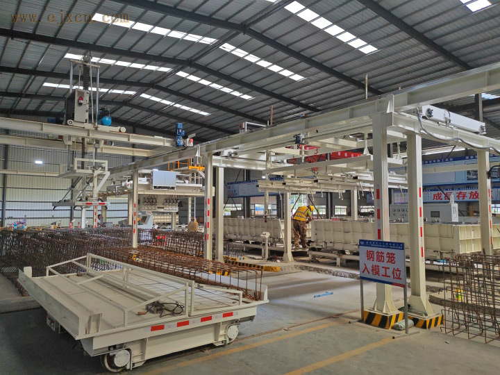 产线主要设备实现自动化(模具自动流转、自动送料、自动布料、自动振捣、机械手钢筋入模、自动开合模、全自动养护、自动翻转脱模、喷油、清扫),产线生产人员6-8人可满足构件生产。