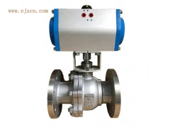 气动法兰球阀,采用了防火、防静电、阀杆防爆出装置技术,可适用多种恶劣场合选型。采用的气动执行器与球阀一体式连接,无需另装支架,减少了因安装连接引起的质量问题,同时也为厂区密密麻麻的设备节约了空间。