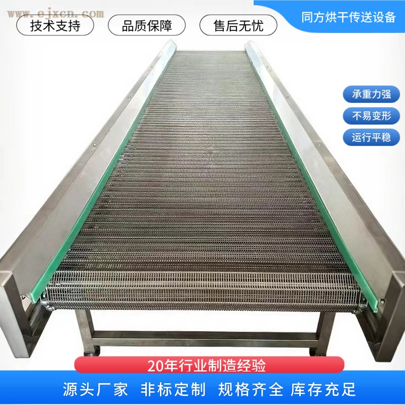 网带输送机用于食品输送、烘干输送。传动方式系采用链轮驱动,所以输送带不易蛇行、偏斜,适用温度:-40度--1200度。