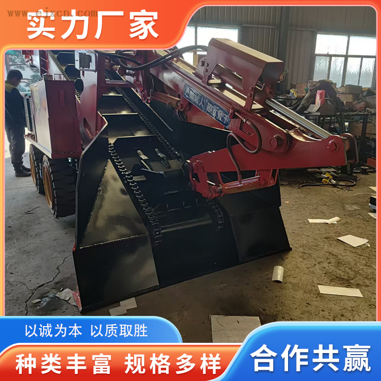 四轮驱动具有着地力,推动力强等特点,挖掘采集功能由机械手完成,机械手具有挖掘、升臂、装料,卸料性能,大臂可上升、下降,左右回转,挖掘采集的操纵有全液压控制,由六个操作手柄控制,80型扒渣机,每个手柄控制二个动作,共十二个动作。输送,装车性能由输送机系统完成,其输送架由液压缸控制升降,宁夏扒渣机,输送架下降时可将前轮支起,同时输送架前接料口与矿石接触面更紧密,工作时稳定性更强,同时可以集合散料,平整场地。传送带宽度为600mm,传送速度为800MM/秒,传送带由液压马达带动滚筒、使传送机性能更稳定,使用寿命更长。