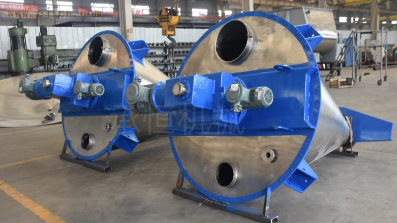 7、采用小角度的锥型筒体结构,使卸料速度快、干净、不积料。