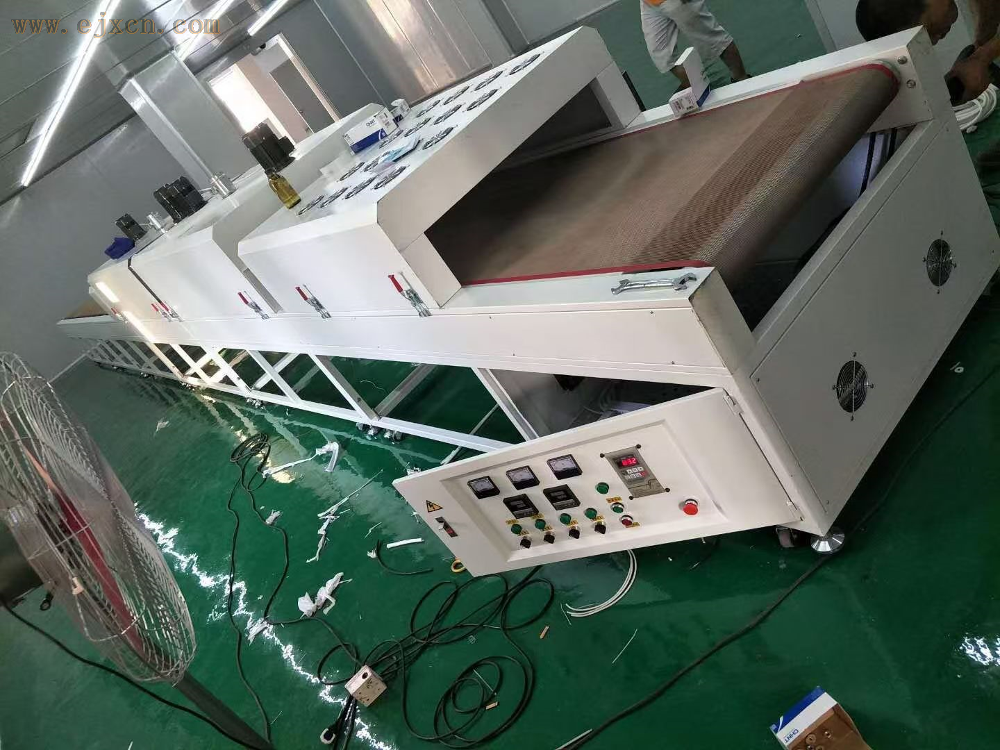 此外,设备集成多重安全防护机制,双金属片传感器与电子温度保险构成双重过温保护,气流监控系统实时监测风压差,异常时自动报警,门禁联锁设计在设备开启时自动切断加热元件电源,全方位保障生产安全。而且,7英寸触摸屏人机界面支持配方存储、过程追溯,还能通过RS485接口接入工厂MES系统,实现智能化生产管理。